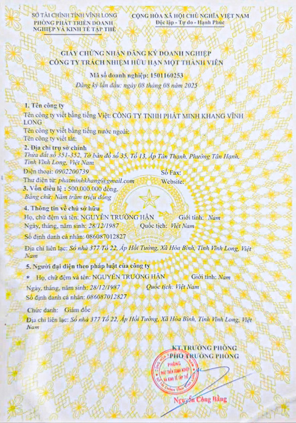 CÔNG TY TNHH PHÁT MINH KHANG VĨNH LONG